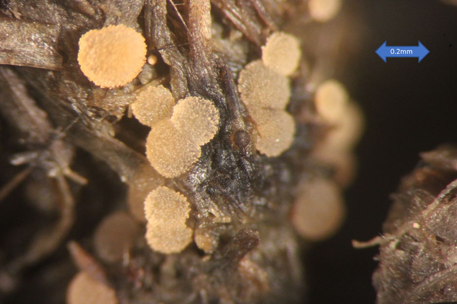 The table shows the species found to date on the different dungs and although some are present on all, such as Schizothecium squamulosum, a producer of thousands of minute black warty flasks over the surface of all the samples, others appear more restricted, for example Iodophanus carneus, with masses of minute (0.1-0.2mm dia.) orange pink cups but only on the domestic sheep dung! Some of the records are unusual and could be new not only to Lundy but also to the SW, notably Rhopalomyces magnus an odd ‘pin mould’ fungus which has comparatively few UK records. Currently I am hoping Rosie can supply some more samples, perhaps extending to Goat Dung and perhaps Pony ‘Apples’ and Cow Pats, the latter will obviously have to be small bits not the whole thing! On the other end of the scale, if Rosie can find it it, Pigmy Shrew dung might yield some surprising species!